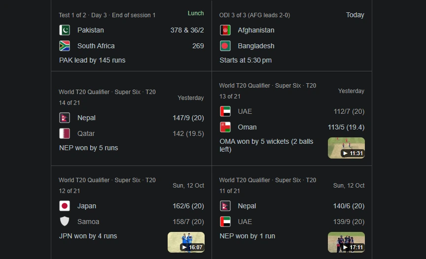 Get Live Scores, Scorecard, Schedules of International and Domestic  matches along with Latest News, Videos and ICC Ranking